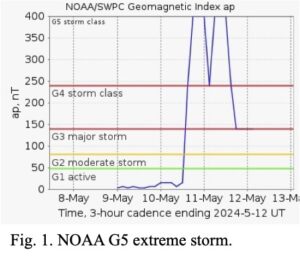 The storm was a NOAA scale G5 event and occurred on May 10-11, 2024 (Figure 1). It is now being called the Gannon Superstorm of 2024 to honor Jenn Gannon, who passed away unexpectedly on May 1, 2024. She was an internationally respected space weather physicist who, among other firsts, developed the real-time U.S. magnetic field network MagStar system for Computational Physics, Inc. (CPI) to observe ground induced currents (GIC). GIC are a space weather hazard for the power grid. She was also the Chair of the American Commercial Space Weather Association (ACSWA) and served on the PROSWIFT Act (2020) Space Weather Advisory Group (SWAG), where she contributed advice across many industrial sectors related to mitigating the hazards of space weather to U.S. Government agencies.
