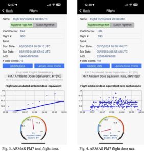 The Gannon Superstorm occurred while the ARMAS FM7 detector was measuring dose on a non-stop San Francisco to Paris flight May 10-11, 2024 (Figure 2). This flight normally flies north from San Francisco to very high latitudes over Canada’s Hudson Bay, across Greenland, above the London, and down to Paris on a “great circle route.” This is the shortest distance between two points on a globe.