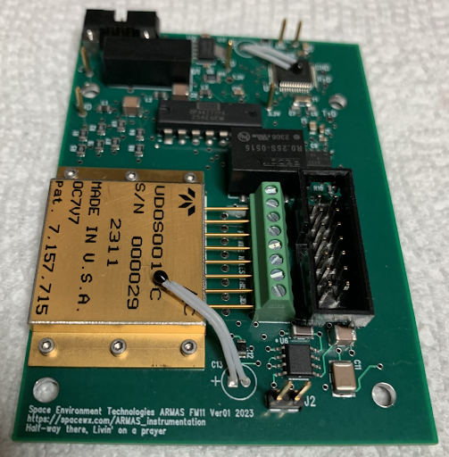 Caption: ARMAS FM11 instrument containing a total ionizing dose detector, microprocessors, associated electronics, and temperature sensors. ‘Half-way there, livin’ on a prayer’ used with permission from songwriter Desmond Childs and singer Jon Bon Jovi.