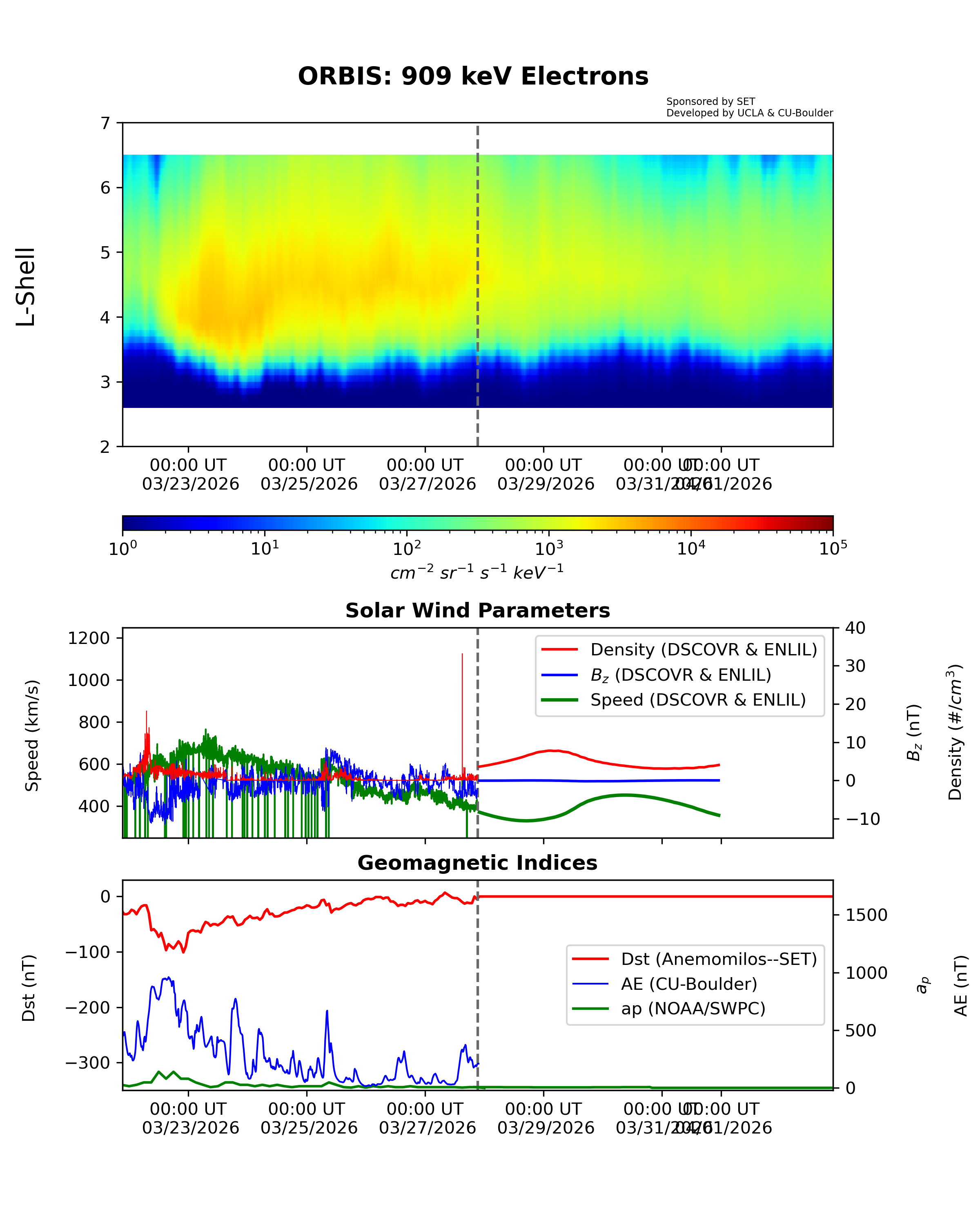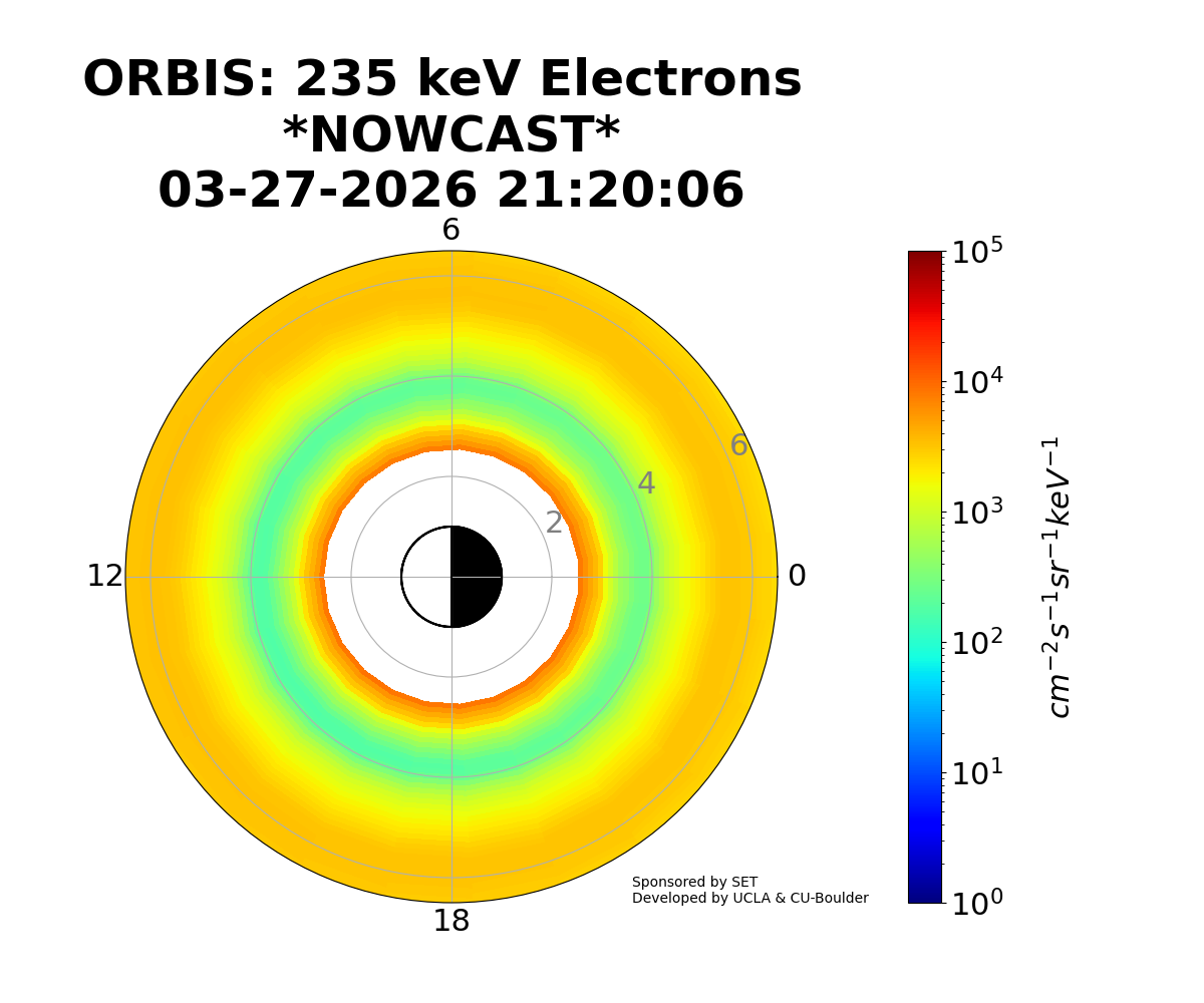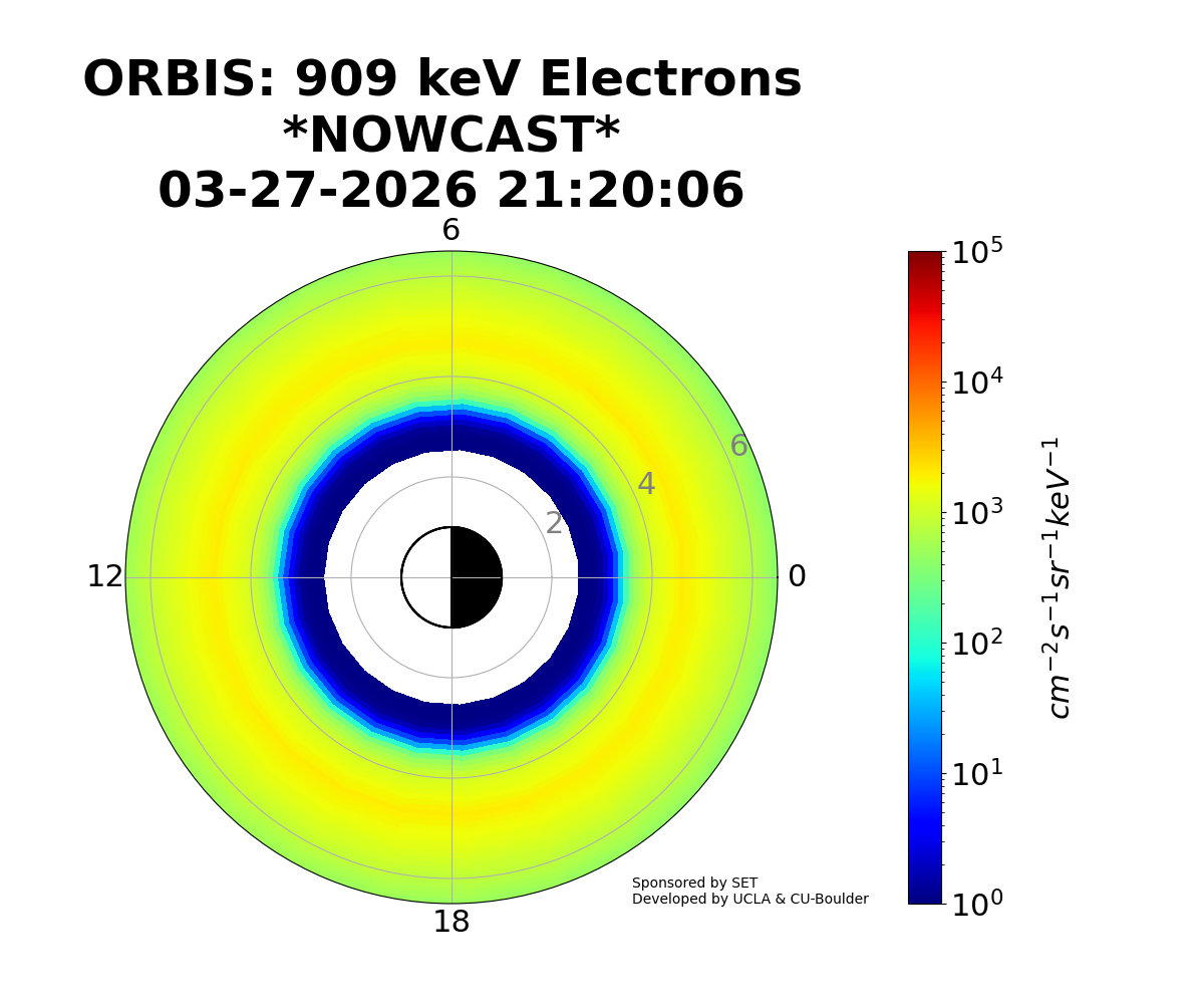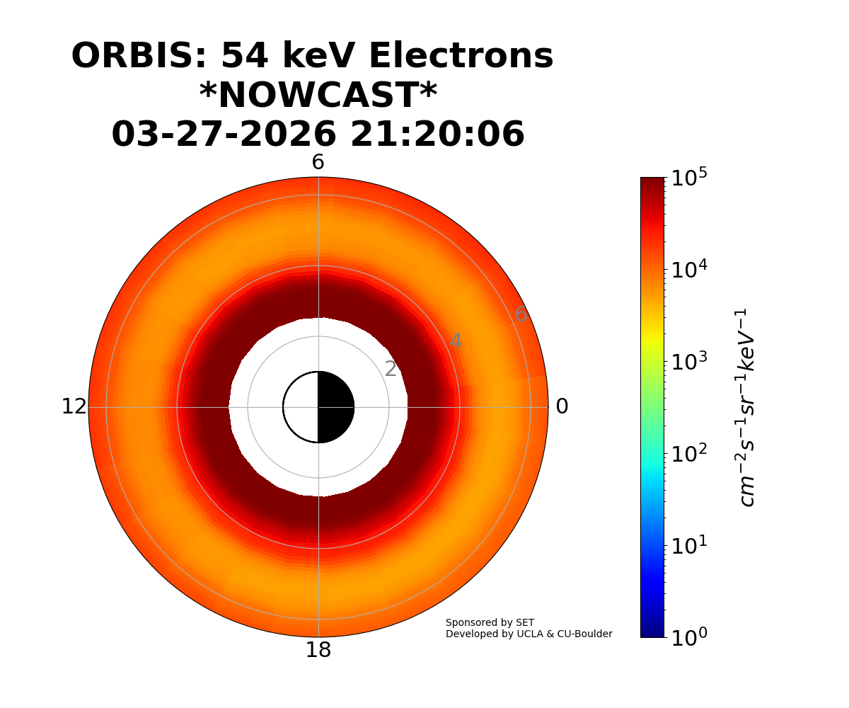 ORBIS is a machine-learned model of the outer Van Allen Radiation belts developed from the RBSP REPT dataset and shows the electron fluxes at different energies. It was developed at UCLA and is hosted by SET.