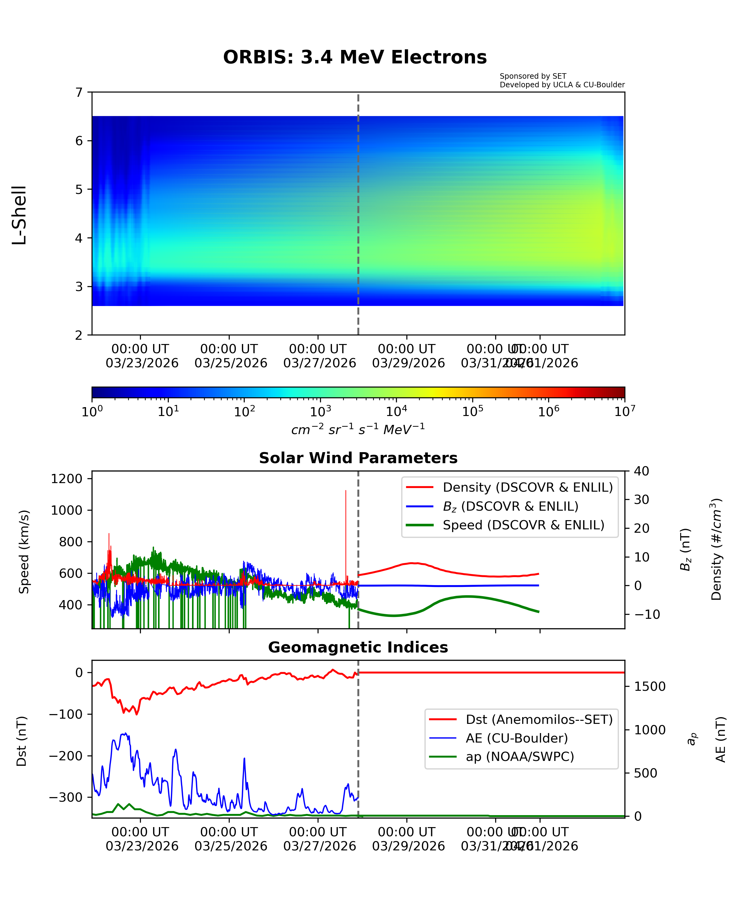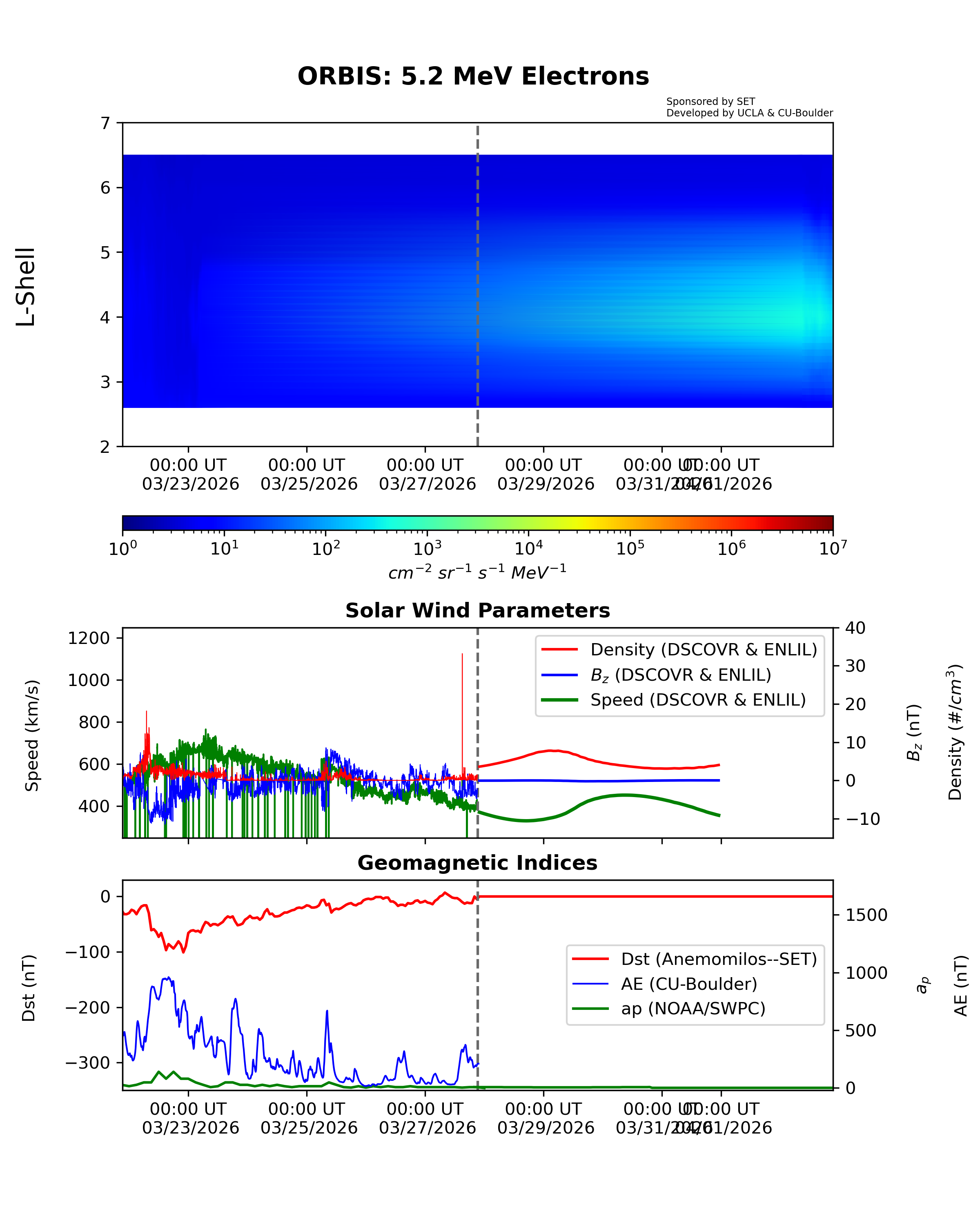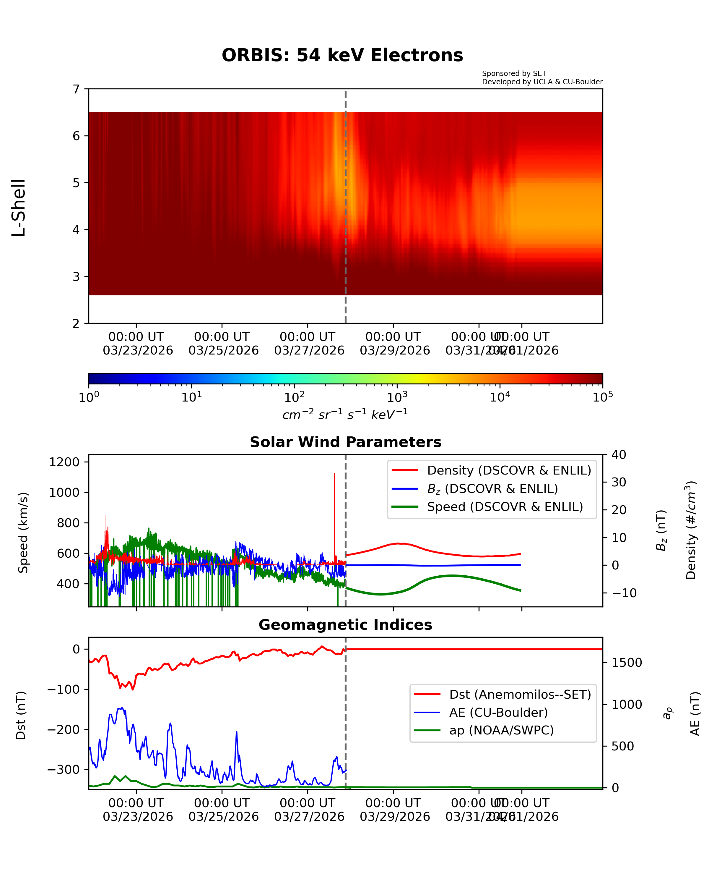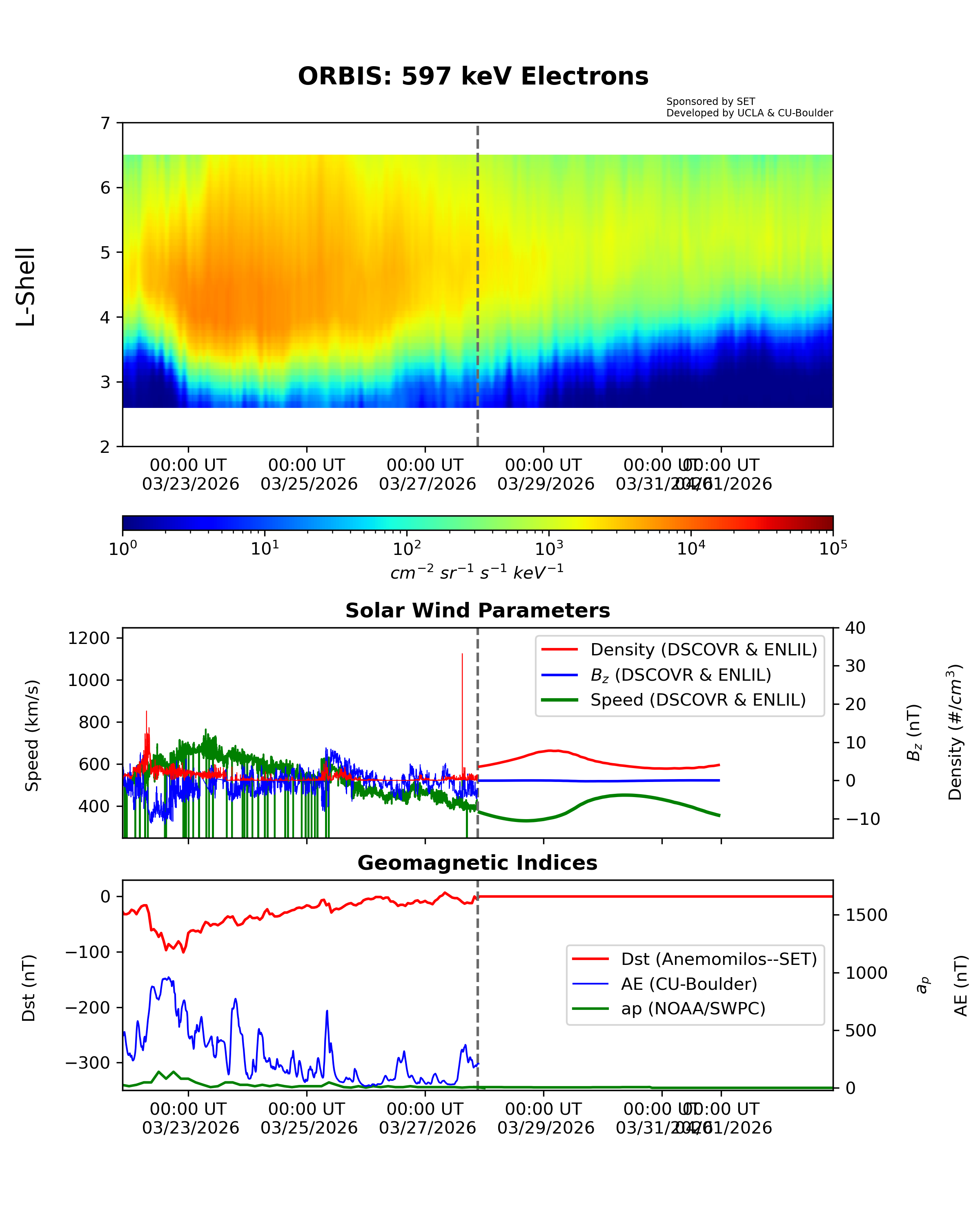ORBIS is a machine-learned model of the outer Van Allen Radiation belts developed from the RBSP REPT dataset and shows the electron fluxes at different energies. It was developed at UCLA and is hosted by SET.
