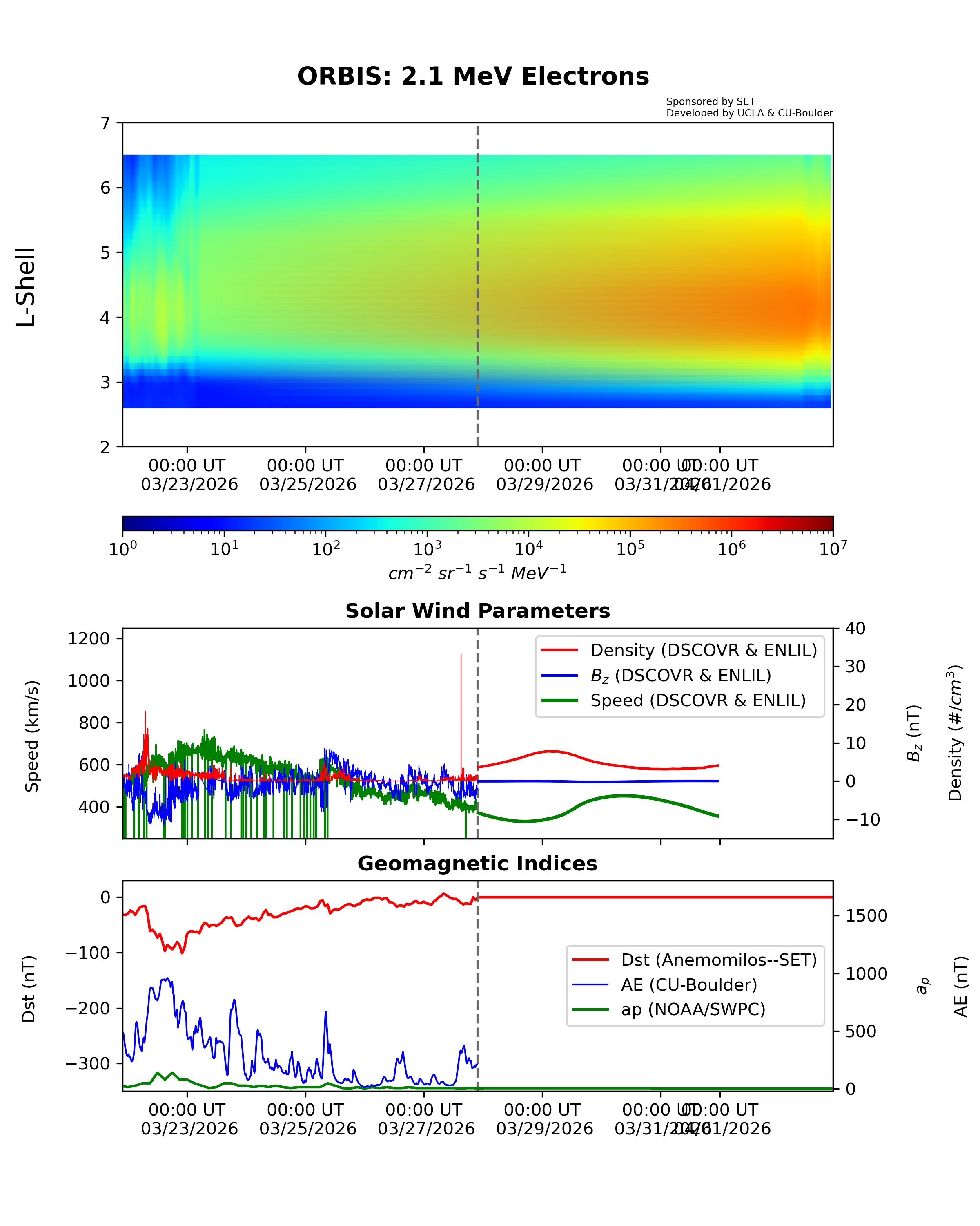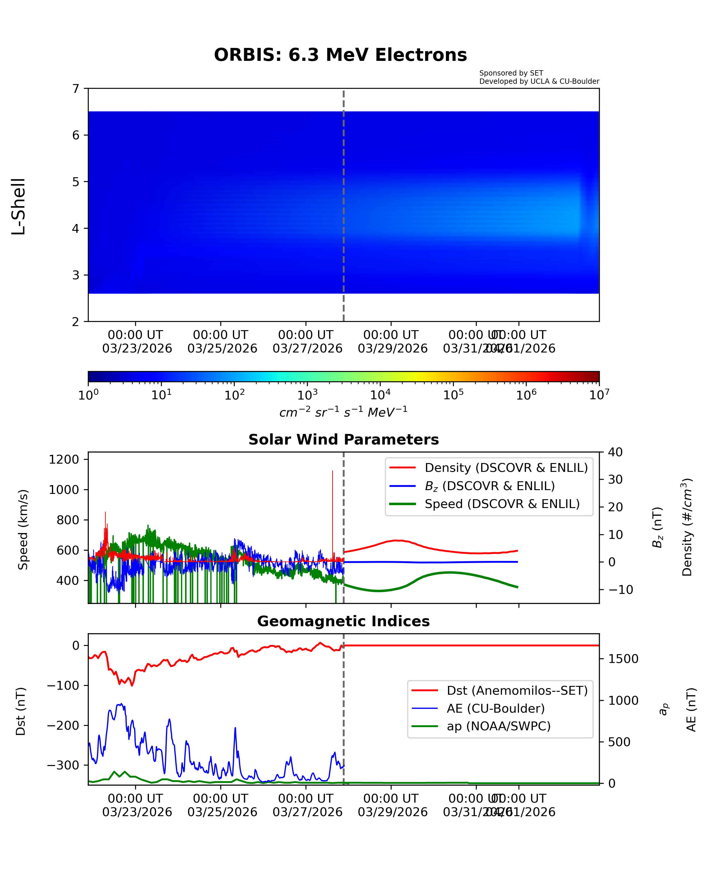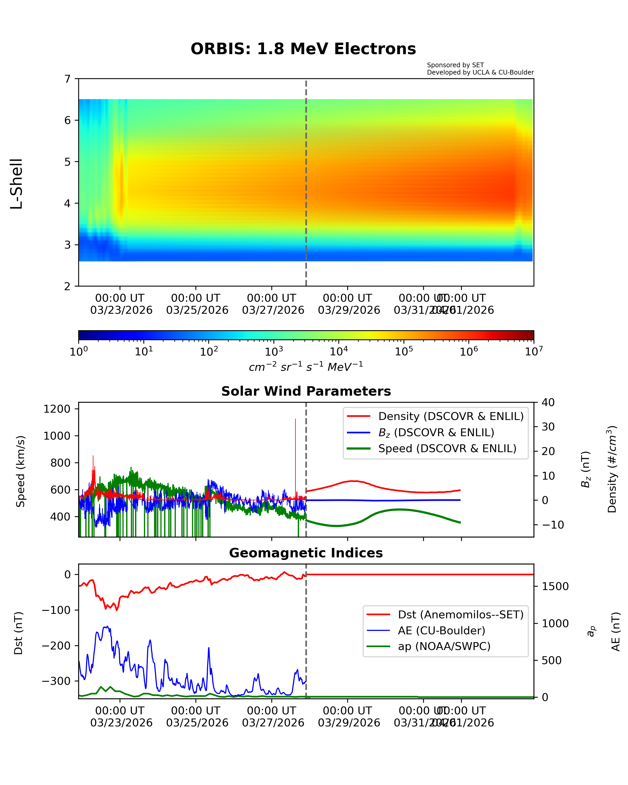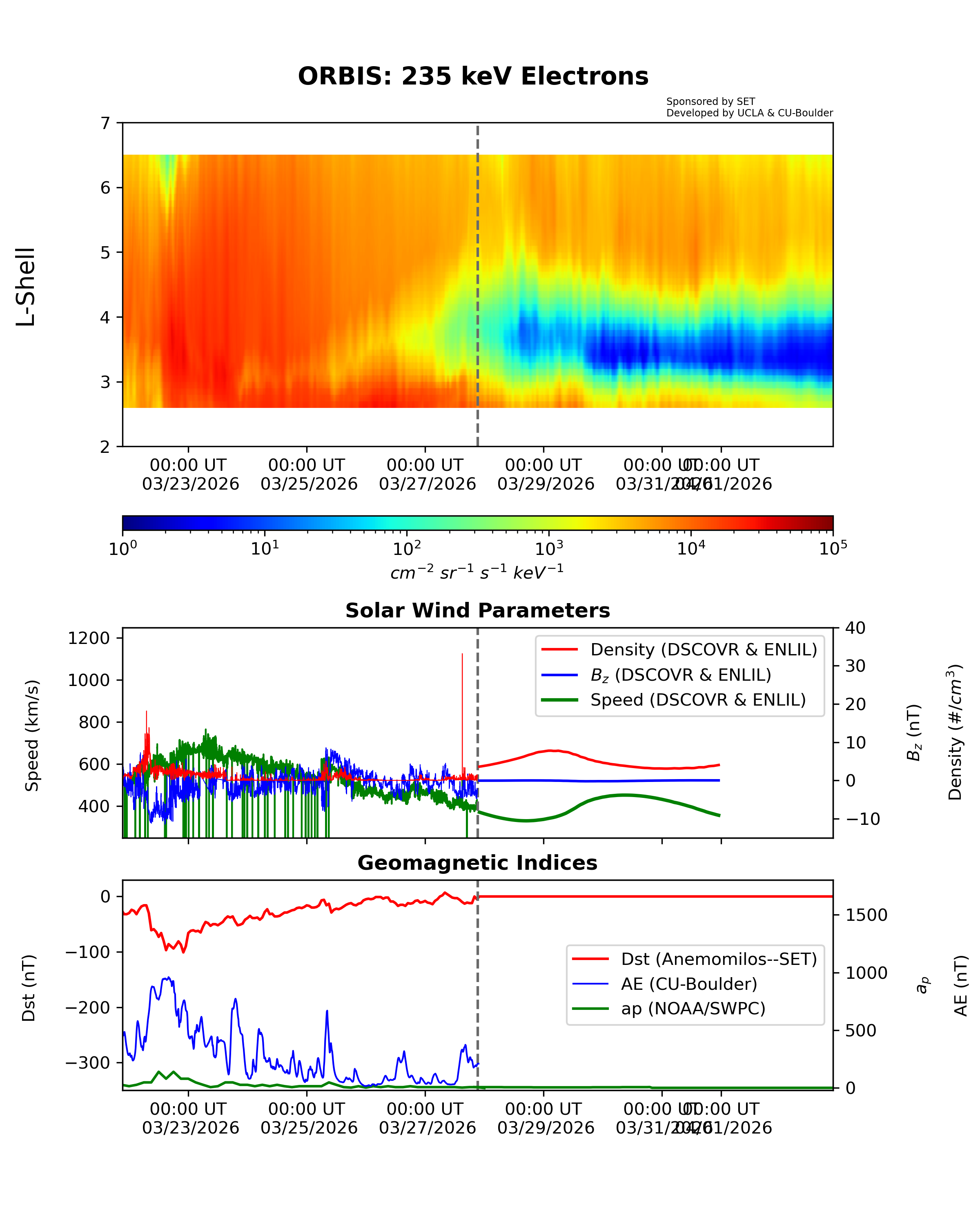 ORBIS is a machine-learned model of the outer Van Allen Radiation belts developed from the RBSP REPT dataset and shows the electron fluxes at different energies. It was developed at UCLA and is hosted by SET.